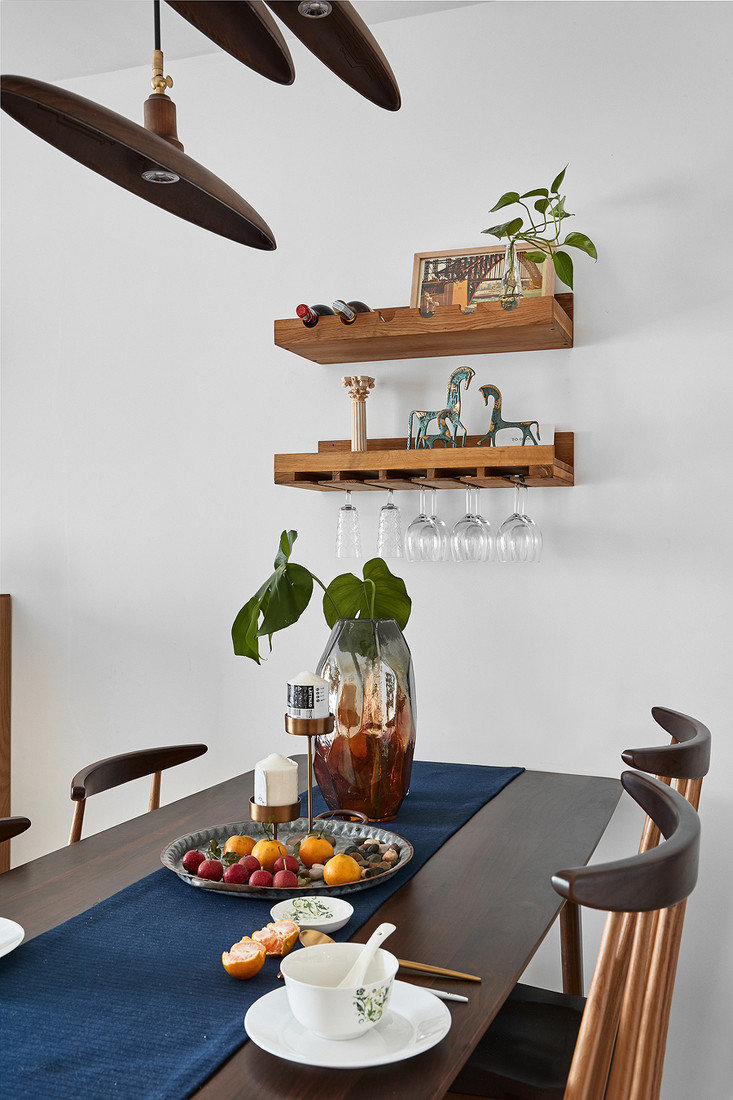 ▲ 深藍色桌旗濃郁而靜謐,配以精致考究的裝飾擺件與餐具,提升空間格調(diào)與品味。