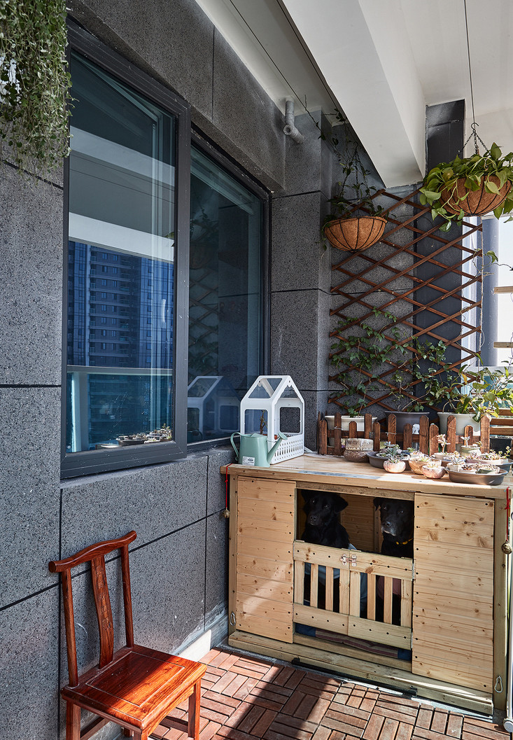▲ 陽臺上良好的格局規(guī)劃,讓屋主的生活更愜意,不僅為寵物安置了舒適的家,還有養(yǎng)花喝茶的美好時光。