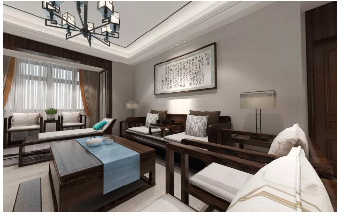 神靜而心和,心和而形全,淡淡水墨悠幽禪,緩緩徐來波不興,大家風(fēng)范猶如新中式風(fēng)格。