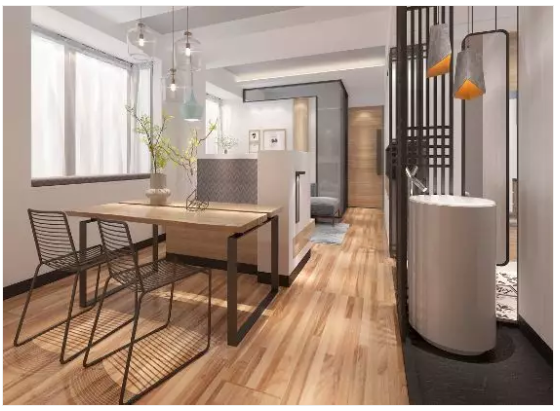 小戶型空間本就不多,再強(qiáng)調(diào)區(qū)域的劃分會顯得空間內(nèi)各個區(qū)域更狹窄。很多人為了突出區(qū)域感,會用不同的材質(zhì)與高度來加以劃分區(qū)域,于是在小戶型中造成了“回廊”現(xiàn)象,阻礙視線又浪費(fèi)空間。