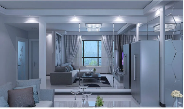 營造充滿輕盈感的家居環(huán)境,最要緊就是讓空間變得通透起來,特別是面積不夠大、光線不夠理想的房間,更需要用輕盈、纖細(xì)、充滿呼吸感的元素來化解。鏡子,因?qū)⒄瘴锏姆瓷渥饔枚讵M小的空間中被廣泛使用,但鏡子的合理利用又是一個不小的難題,過多會讓人產(chǎn)生視覺暈眩感